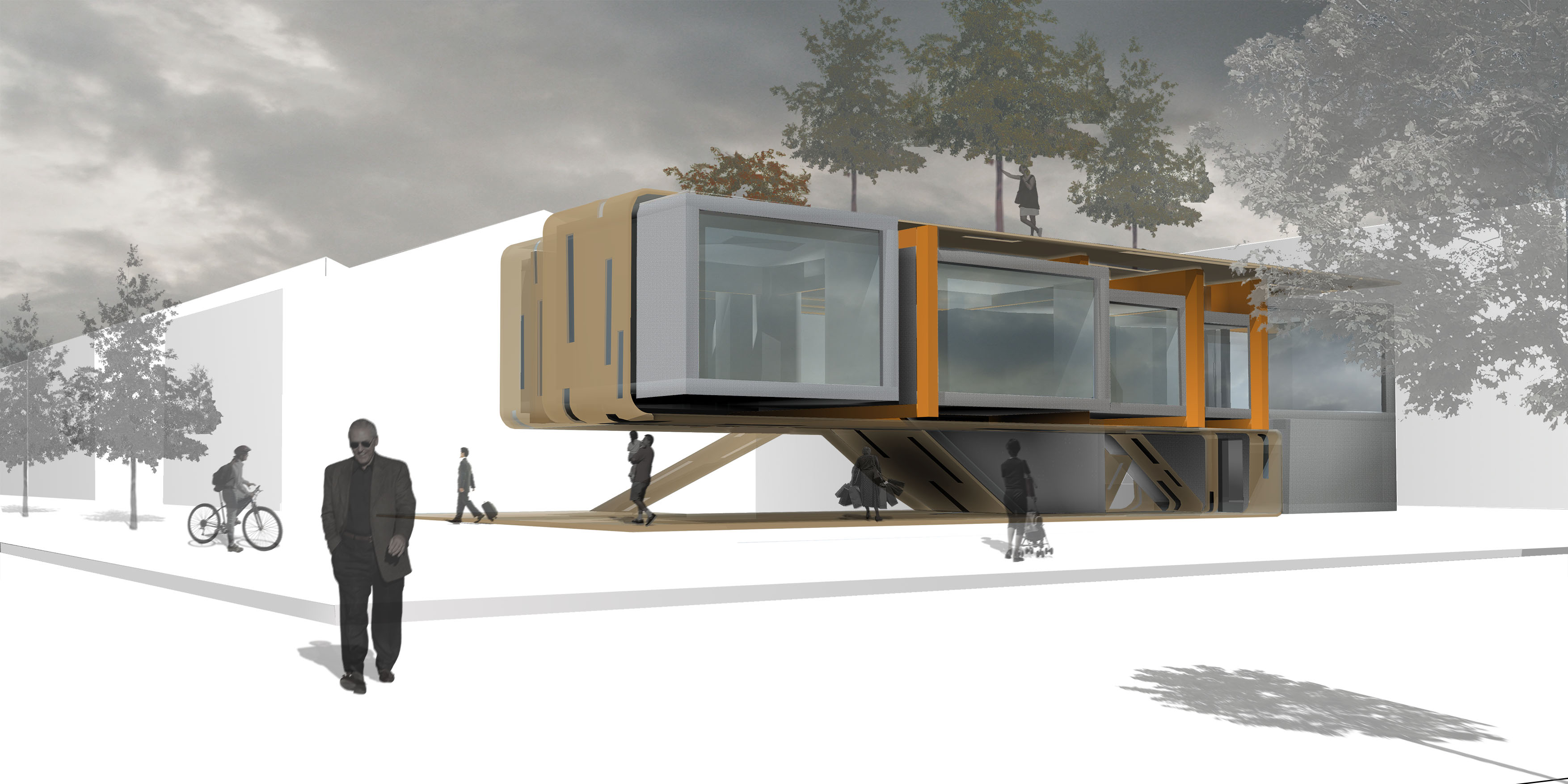 concept house with cleansing system inside of skin construction to filter polluted rainwater and make it usable for housing and work stations, 2008